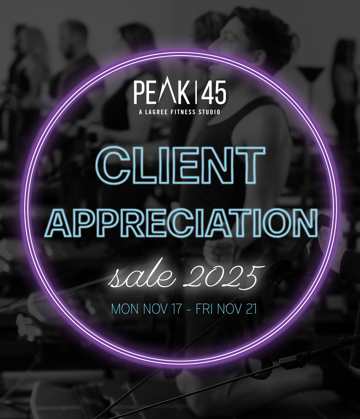#Peak45 #LagreeSLC #SaltLakeCityFitness #ClientAppreciationSale #LagreeCommunity #UtahFitness #MegaformerWorkout